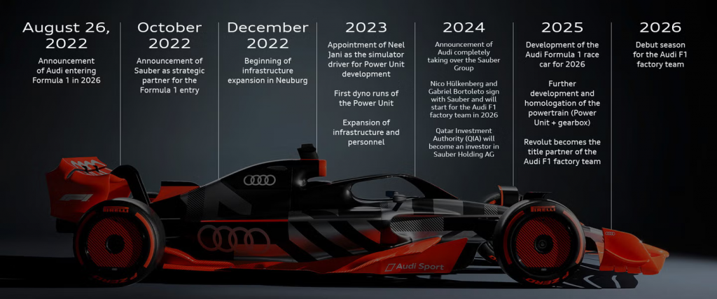 • Audi enters F1 aiming to turn Sauber into a winner by 2030