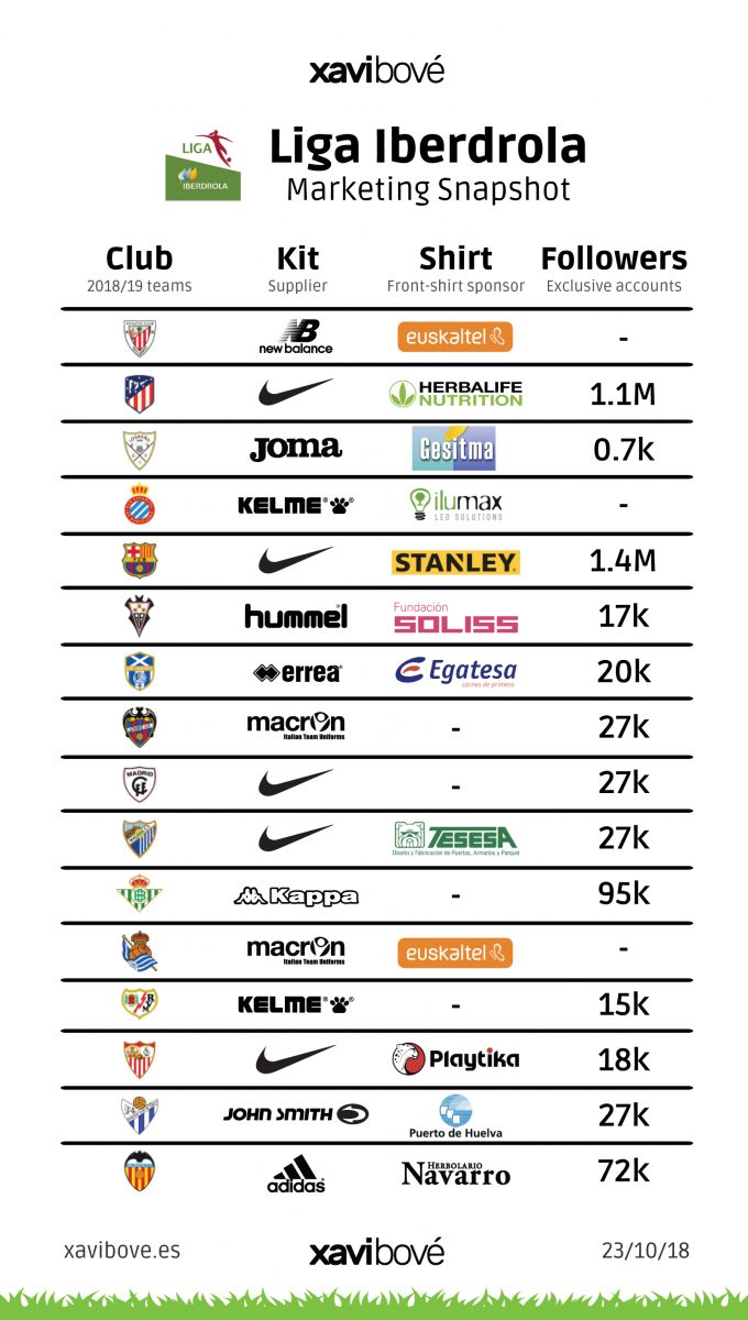 - Adidas is weakly represented in Liga Iberdrola, only through Valencia Femenino. Same in Liga Santander, where supplies Real Madrid, Valencia and Celta. Is their strategy focused on athletes endorsement rather than teams?