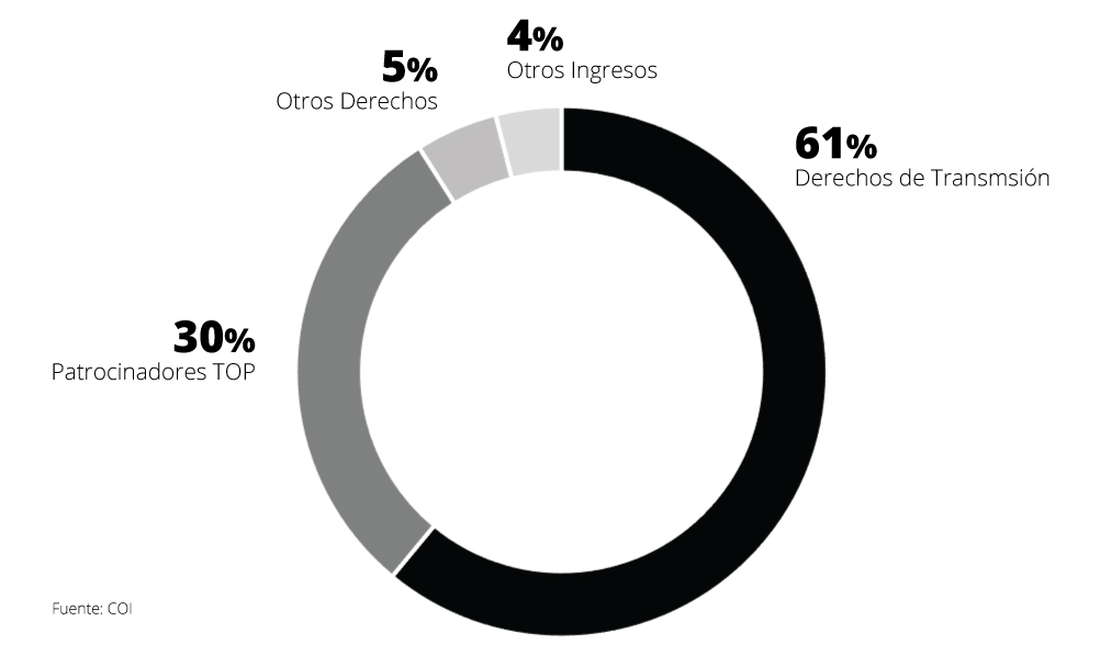 Los ingresos de la entidad olímpica provienen principalmente de los derechos de transmisión y de los patrocinadores globales.