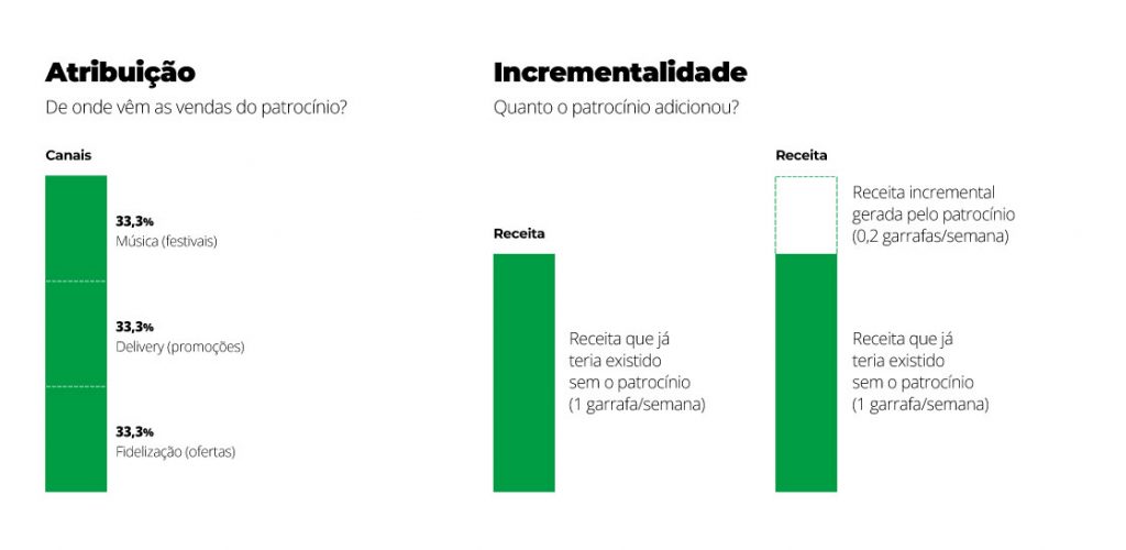 Por exemplo, para uma empresa de cerveja, é vital compreender se a maior parte da receita vem de supermercados ou restaurantes (atribuição) e a contribuição da receita das suas campanhas publicitárias que só existiu por causa do marketing (incrementalidade).